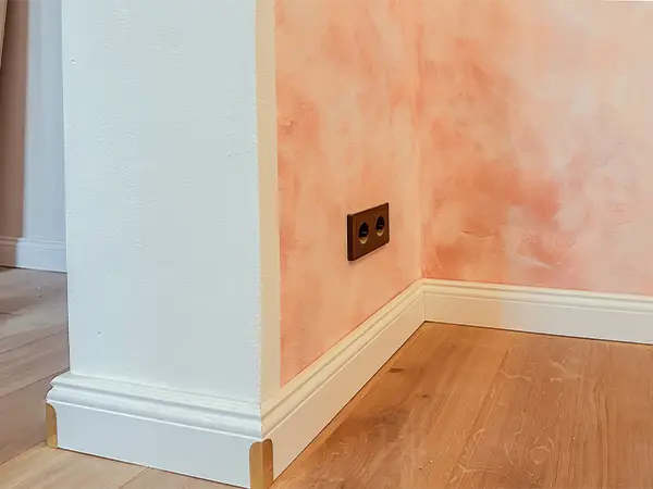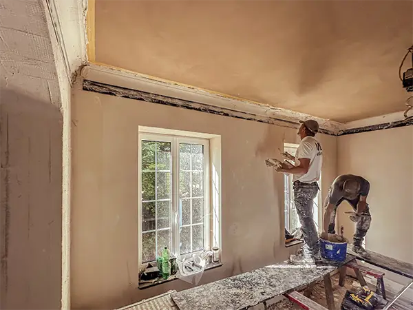 Detailaufnahme von Stuckarbeiten im Jägerhof auf Rügen während der Sanierung durch NordWerk
