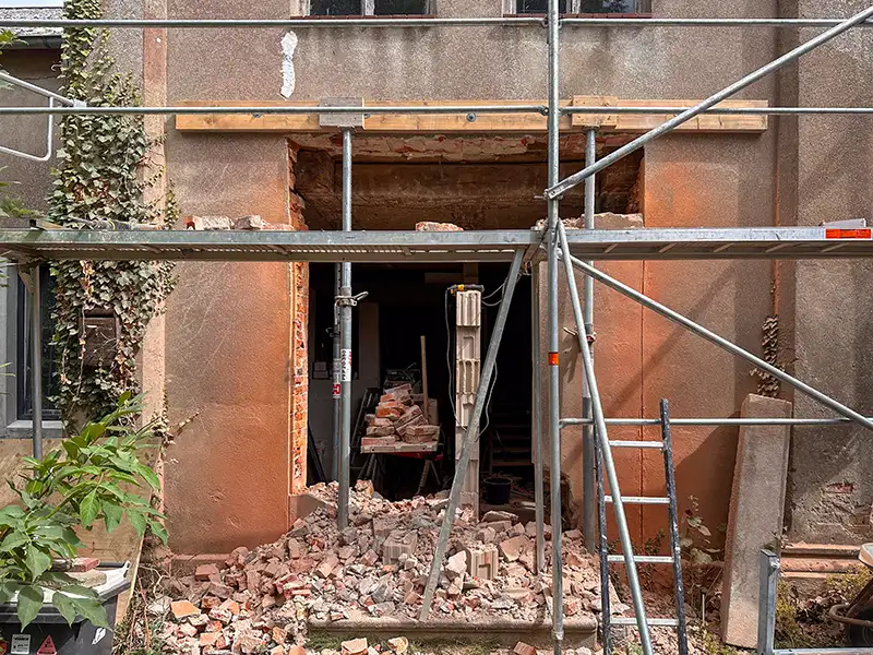 Der Jägerhof ist ein echtes Schmuckstück auf Rügen – alt, geschichtsträchtig und mit ganz eigenem Charakter. Genau das macht die Sanierung so besonders: innen setzen wir auf hochwertige Materialien und moderne Technik wie eine Deckenheizung, ohne den Charme des Hauses zu verlieren.